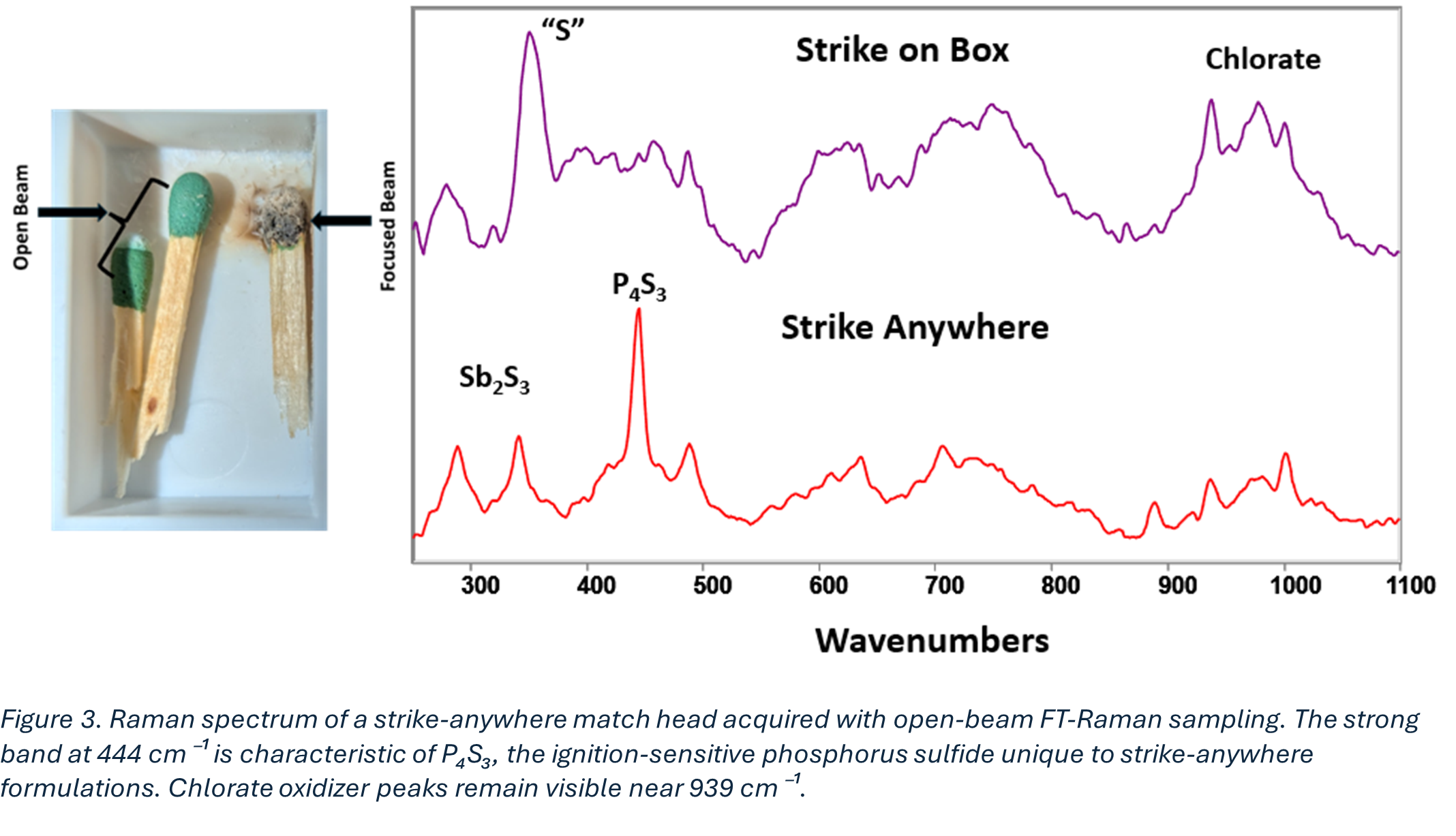 To illustrate this sampling advantage, we examined the Raman signatures of common consumer matches.