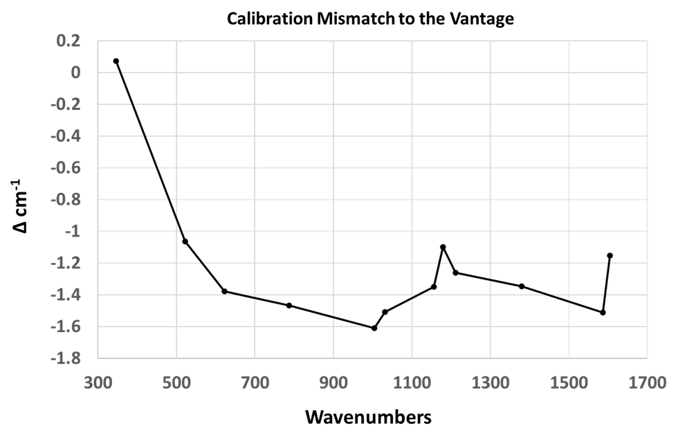By common RMID standards, these spectra would not be judged to represent the same material, underscoring the importance of calibration stability.